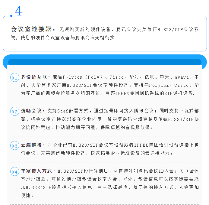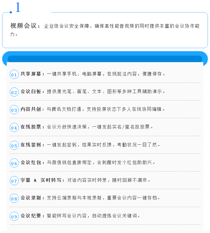 本司作为腾讯会议、企业微信及乐享的服务商,我们致力于推广和销售腾讯会议、企业微信、乐享等产品,提供多场景、多需求的会议解决方案。